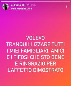Ecco il contenuto della Instagram story di Babacar, a seguito del malore accusato in ritiro: “Volevo tranquillizzare i miei familiari, amici e tifosi che sto bene e ringrazio tutti per l’affetto”