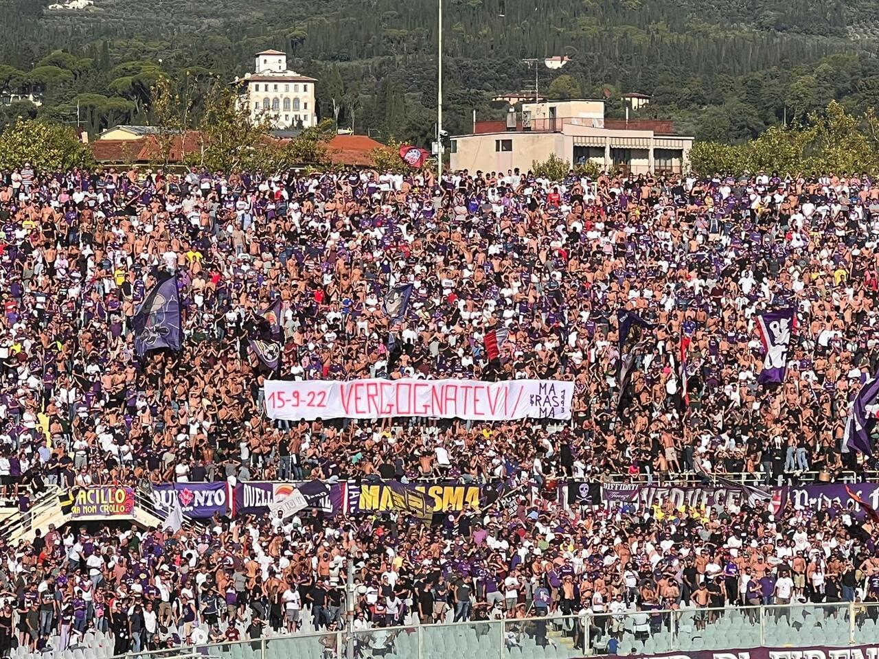 La sconfitta contro il Basaksehir non è stata dimenticata dai tifosi della Fiorentina che al 60esimo hanno esposto uno striscione di protesta verso la squadra di Vincenzo Italiano.