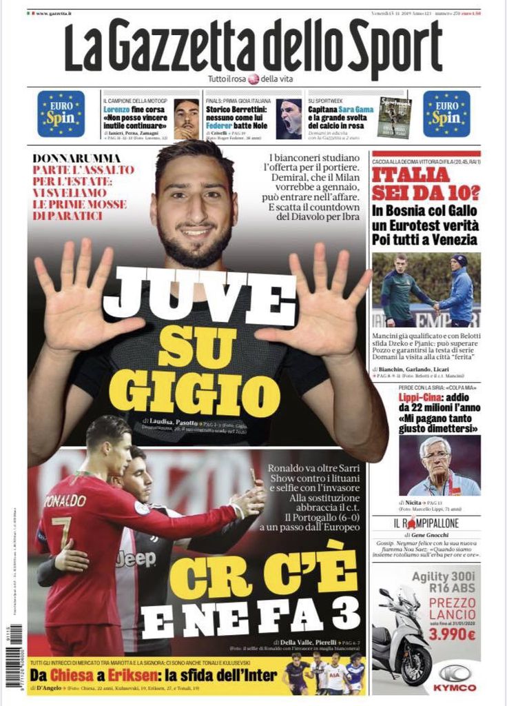 RASSEGNA STAMPA, Le prime pagine dei quotidiani sportivi Redazione 15 Novembre 2019 Ecco le prime pagine di questa mattina: