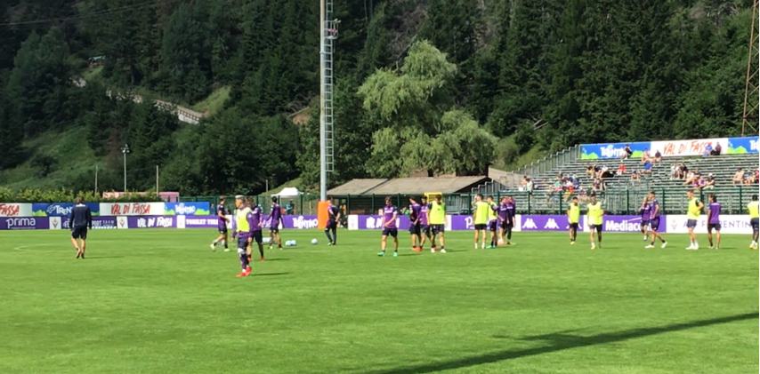 Dopo una fase di attivazione senza palla divisa tra palestra e campo la Fiorentina è adesso scesa stabilmente sul centrale del Centro Sportivo Cesare Benatti per lavorare sulla parte tattica del 4-3-3. Curioso come nella squadra con le casacche, l’ipotetico 11 titolare, oltre al solito tridente Callejon-Vlahovic-Sottil, veda nuovamente schierato Terzic e non Biraghi sulla sinistra e soprattutto un Benassi che sembrerebbe aver clamorosamente preso il posto di Bonaventura. Confermati invece Bianco e Duncan in mezzo al campo, Milenkovic-Ranieri come centrali, e Venuti sulla destra. Ecco il video dell’ingresso sul manto erboso di Moena dei viola: https://youtu.be/qRibfDHmcRA