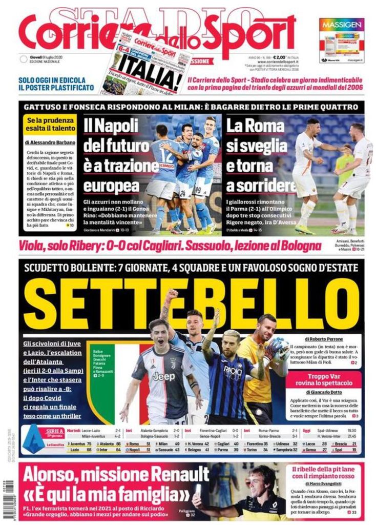 RASSEGNA STAMPA, Le prime pagine dei quotidiani sportivi di oggi Redazione 9 Luglio 2020 Ecco le prime pagine dei quotidiani sportivi di oggi: