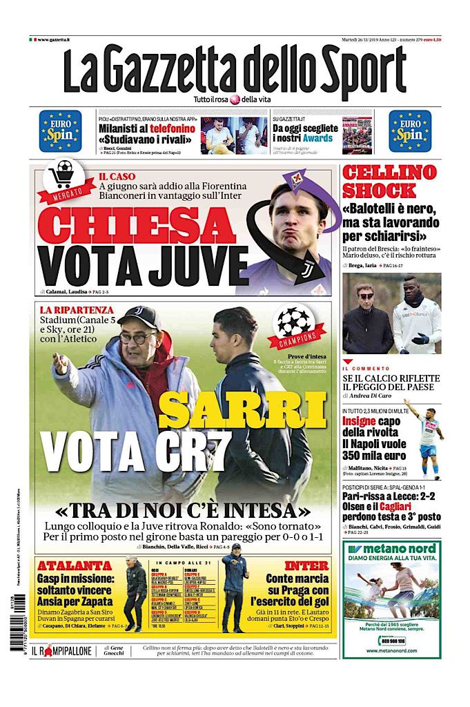 RASSEGNA STAMPA, Le prime pagine dei principali quotidiani sportivi Redazione 26 Novembre 2019 Queste le prime pagine dei principali quotidiani sportivi oggi in edicola
