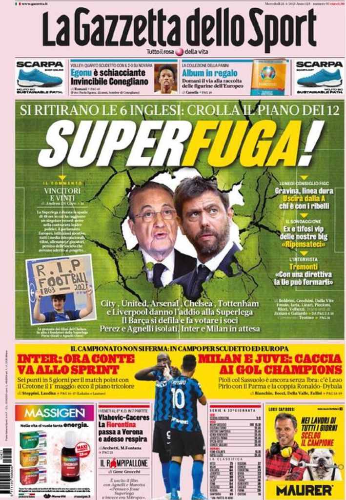 “Vlahovic-Caceres. La Fiorentina passa a Verona e adesso respira“, questo il titolo nel trafiletto in basso della prima pagina della Gazzetta dello Sport. La rosea parlando dei viola si concentra sull’importanza della vittoria degli uomini di Iachini che, grazie alle reti di Vlahovic e Caceres, si sono aggiudicati tre punti fondamentali nella lotta salvezza. La classifica attualmente infatti recita Fiorentina a quota 33 punti, ossia +8 sulla terzultima in classifica che è il Cagliari con 25 punti. Da qui al termine del campionato potrebbero bastare altri 5 punti per avere una posizione tranquilla e non rischiare più la retrocessione.