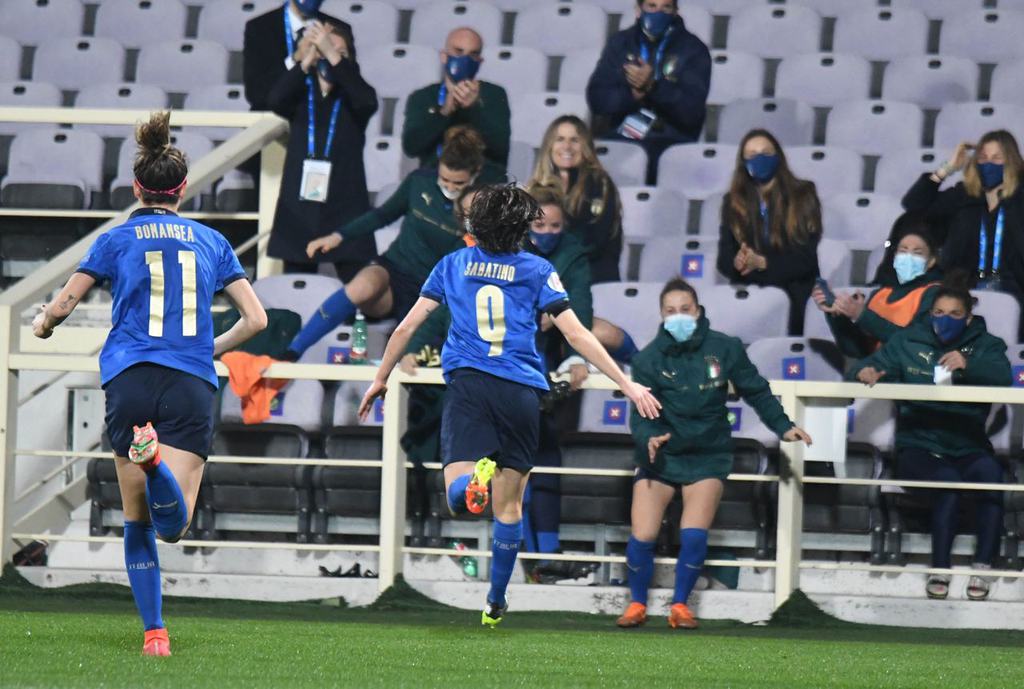 È terminato al Franchi il match tra l’Italia femminile e Israele. Le ragazze della Bertolini hanno surclassato gli avversari con un sonoro 12-0 che permette alle azzurre di strappare il pass per Euro 2022, visto che sarebbe bastato vincere con due reti di scarto per raggiungere l’obbiettivo. Le reti nel primo tempo sono state segnate da Giacinti al 3′ e al 13′, Bonansea al 5′, autogol di David al 19′, Girelli al 30′, Salvai al 44′ e Rosucci su rigore al 47′. Nella ripresa invece c’è stato spazio anche per l’attaccante della Fiorentina Femminile, Daniela Sabatino, che ha messo a segno una doppietta con gol al 55′ su rigore e al 70′. Gli altri gol li hanno segnati Caruso al 67′, sempre Bonansea all’81’ e Giugliano al 91′.