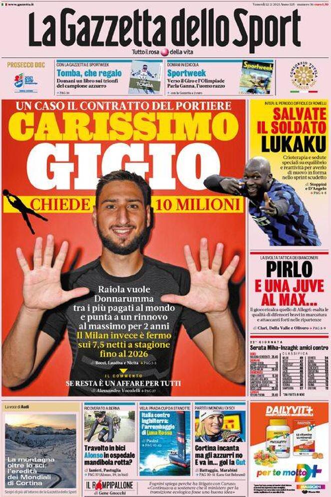 RASSEGNA STAMPA, Le prime pagine dei quotidiani Redazione 12 Febbraio 2021 Ecco le prime pagine dei principali quotidiani sportivi di oggi: