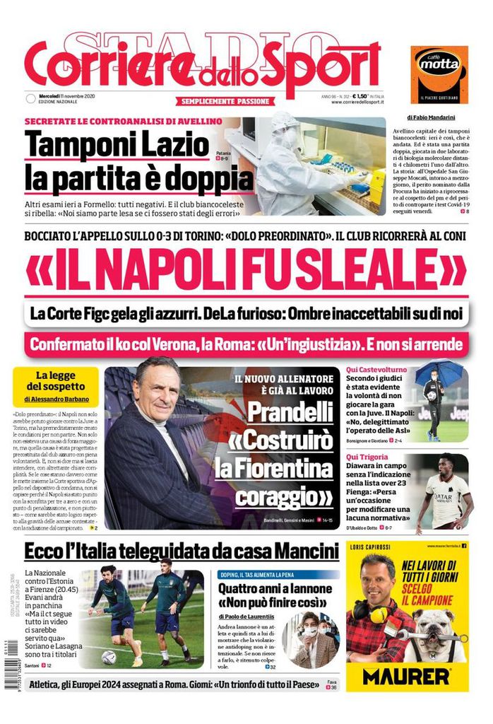 RASSEGNA STAMPA, Le prime pagine dei quotidiani sportivi di oggi Redazione 11 Novembre 2020 Ecco le prime pagine dei quotidiani sportivi di oggi: