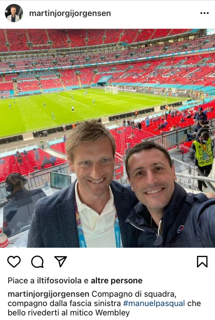 Due ex glorie della Fiorentina ossia, Manuel Pasqual e Martin Jorgensen, si sono ritrovati allo stadio di Wembley in occasione del match di ieri sera tra Italia e Austria. Ecco la foto pubblicata da Jorgensen pubblicata sul propio profilo Instagram a testimoniare l’incontro: