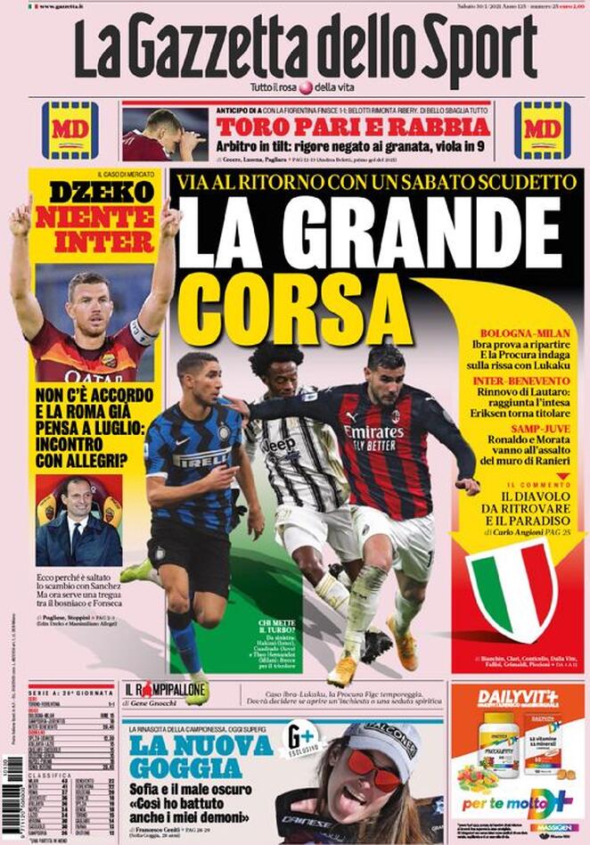 RASSEGNA STAMPA, Le prime pagine dei quotidiani di oggi Redazione 31 Gennaio 2021 Ecco le prime pagine dei principali quotidiani sportivi di oggi: