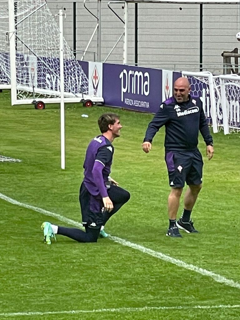 Dopo una dura sessione d’allenamento il bomber viola trova anche il tempo di scherzare e rilassare i nervi assieme ai preparatori atletici dell’ staff di Vincenzo Italiano. Ecco qui di seguito alcuni scatti fotografici di FiorentinaUno.com che mostrano alcune sequenze di quegli attimi di relax e goliardia: