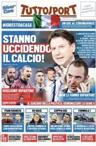 RASSEGNA STAMPA, Le prime pagine dei quotidiani sportivi Redazione 28 Aprile 2020 Ecco le prime pagine di questa mattina: