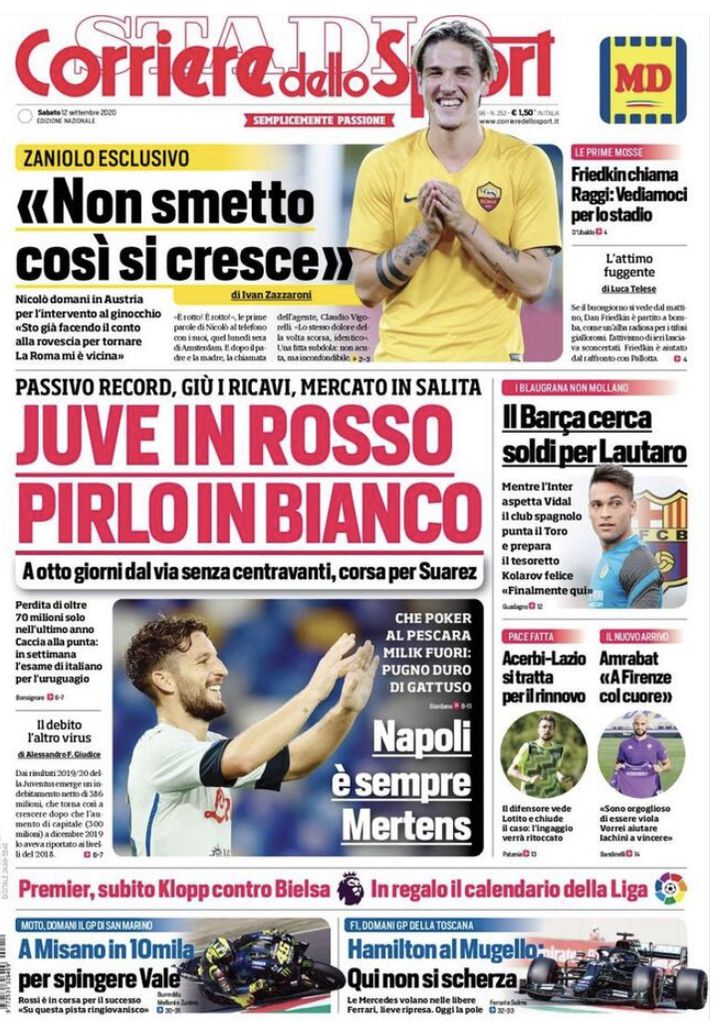 RASSEGNA STAMPA, Le prime pagine dei quotidiani sportivi di oggi Redazione 12 Settembre 2020 Ecco le prime pagine dei quotidiani sportivi di oggi: