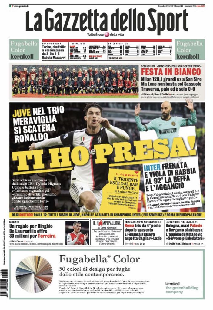 Titola così questa mattina in edicola La Gazzetta dello Sport “Borja segna subito ma l’Inter non chiude, Vlaohvic la gela al 92’ ora è a 39 con la Juve. L’ex viola apre i conti, i nerazzurri controllano, però Lukaku si mangia il 2-0: la Fiorentina in contropiede si prende il punto con i denti, Montella può respirare.”