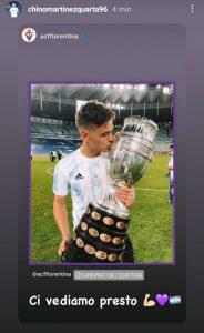 Dopo il post viola arriva subito la risposta di uno dei protagonisti della vittoria argentina. Si tratta di Martinez Quarta, prossimo pilastro della difesa viola, chissà magari al posto del capitano e connazionale Pezzella. Intanto però il giovane difensore viola si dice pronto a tornare a Firenze, con tanto di cuore viola.