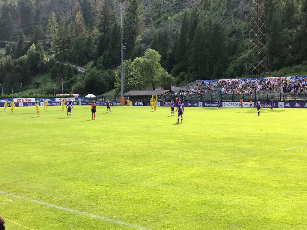 90’- Finisce qui il match. 89’- Miracolo di Schenk su un gran colpo di testa da posizione centrale di Saponara, imbeccato da un bellissimo traversone di Agostinelli. 87’- Tentativo di battuta a rete da centro area di Maleh respinto da un intervento in extremis della difesa dell’Ostermunchen. 82’- Settimo gol della Fiorentina! Doppietta personale per Benassi che si inserisce nuovamente con i tempi giusti, riceve il secondo assist del match di Terzic, ed insacca spiazzando Schenk. 77’- Altro cambio nella Fiorentina con Ferrarini che ha preso il posto di Ranieri. 77’- Gol della bandiera per l’Ostermunchen, calcio di rigore procurato da un fallo di mano di Ranieri e trasformato da Schiedermeier. 72’- Cambio nella Fiorentina con Agostinelli che ha preso il posto di Munteanu. 67’- Sesto gol della Fiorentina con Benassi che si inserisce in area, riceve palla da Kokorin e con un bel diagonale batte Schenk. 62’- Arriva anche il 5-0 per la Fiorentina con un gran sinistro scaricato sotto l’incrocio da Saponara che ha ricevuto a centro area un bell’assist dal fondo di Terzic. 54’- Dopo la rete ad inizio ripresa la Fiorentina ha abbassato un po’ i ritmi non trovando altre grandi occasioni da gol. 47’- Grandissimo gol di Ranieri che insacca la rete del 4-0 con una splendida rovesciata messa a segno da centro area. 46’- Iniziata la ripresa. Squadra totalmente rivoluzionata ad eccezione di Terracciano. Ecco i nuovi 11: Terracciano, Terzic, Igor, Ranieri, Venuti, Benassi, Bianco, Maleh, Saponara, Kokorin, Munteanu. Si conclude sul punteggio di 3-0 la prima metà di gioco tra Fiorentina e Ostermunchen. I viola guidati quest’oggi per la prima volta in panchina da Italiano si sono finché le gambe hanno retto, primi 30’ minuti, hanno disputato un’ottima gara con belle trame di gioco e con un tentativo continuo di riconquista alta della palla. Il tutto ovviamente tendendo conto del livello dell’avversario. Sugli scudi Lirola, Callejon e Bonaventura. Ottima la prova anche di Sottil, molto impreciso sotto porta Vlahovic. 45’- Fine primo tempo 42’- Altra grande cavalcata sulla fascia di Lirola, tra i migliori in campo della Fiorentina insieme a Bonaventura e Callejon. 39’- Sottil si divora il quarto gol a porta vuota su un altro grande assist di Callejon. 35’- Altra occasione sprecata da Vlahovic che, imbeccato in area da pozione defilata resiste alla carica di un avversario, finta la conclusione, e alla fine quando arriva a calciare con il destro trova la deviazione con il piede di Schenk che manda il pallone fuori dallo specchio della porta. 29’- Grande occasione per la Fiorentina! Vlahovic imbeccato in area di rigore a tu per tu con Schenk lo salta, si defila ma a porta vuota non trova il gol ma solo l’esterno della rete. 26’- Terzo gol viola! Lirola arriva sul fondo, mette un cross arretrato a centro area con Duncan che dopo un intelligente velo di Vlahovic scaraventa in rete la palla del momentaneo 3-0. 25’- Sinistro da centro area di Vlahovic respinto con una grande parata da Schenk. 23’- Sinistro dal limite di Bonaventura bloccato a terra senza problemi da Schenk. 19’- Rischia l’autogol l’Ostermunchen dopo un grande cross sfornato da Sottil dalla sinistra. 15’- Raddoppio viola! Grandissima azione sull’asse Bonaventura-Callejon con il primo bravo ad imbeccare in area lo spagnolo il quale, come ai tempi del Napoli, prende il tempo alla linea difensiva dei tedeschi riappoggiando il pallone a rimorchio per uno splendido colpo di tacco di Jack, oggi in maglia numero 10. 11’- Altra occasione viola sugli sviluppi di un angolo battuto dalla sinistra. Sempre Milenkovic a staccare più alto di tutti, stavolta il colpo di testa del Serbo è stato ben respinto da Schenk. 9’- Vantaggio Fiorentina! Milenkovic svetta di testa a centro area e insacca in rete su corner battuto da Biraghi. 8’- Grande occasione viola, Sottil imbuca per Vlahovic il cui destro viene ben neutralizzato da Schenk. 4’- Prima azione viola, Callejon riceve sulla destra da Lirola e mette al centro un bel traversone spizzato sul secondo palo da un Vlahovic pescato in posizione di fuorigioco. 1’- Al via la gara del Cesare Benatti Ci siamo, tra poco andrà in scena la prima amichevole dell’estate della Fiorentina, e la prima gara con alla guida della panchina gigliata Vincenzo Italiano. Sarà l’occasione buona per vedere se dopo una settimana si vedono già alcuni meccanismi di gioco tipici del tecnico ex Spezia. Le scelte ufficiali parlano ovviamente di un 4-3-3, con Terracciano che sostituisce in porta un acciaccato Dragowski. Lirola, Milenkovic, Dalle Mura e Biraghi, scelto come capitano, a comporre la linea difensiva, a centrocampo Bonaventura, Duncan, e Krastev, mentre davanti il “solito” tridente Callejon-Vlahovic-Sottil, proposto sempre nel corso del ritiro. Ecco le formazioni ufficiali sia dei viola che degli ospiti ossia, l’Ostermunchen, squadra di prima categoria tedesca: Fiorentina(4-3-3): Terracciano, Lirola, Milenkovic, Dalle Mura, Biraghi, Duncan, Krastev, Bonaventura, Callejon, Vlahovic, Sottil. All. Italiano Ostermunchen(4-4-2): Schenk, Kuchler, Schiedermeier, Bell, Bloier, Dirscherl, Mayr, Baumann, Krichbaumer, Niedermeier, Bauer. All. Melnik Harald Arbitro: Perenzoni; 1 Assistente: Donato; 2 Assistente: Giorgi