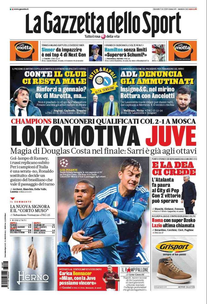 RASSEGNA STAMPA, Le prime pagine dei quotidiani Redazione 7 Novembre 2019 Di seguito le prime pagine dei quotidiani sportivi: