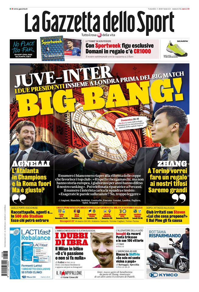 RASSEGNA STAMPA, Le prime pagine dei quotidiani sportivi Redazione 6 Marzo 2020 Queste le prime pagine dei quotidiani sportivi oggi in edicola: