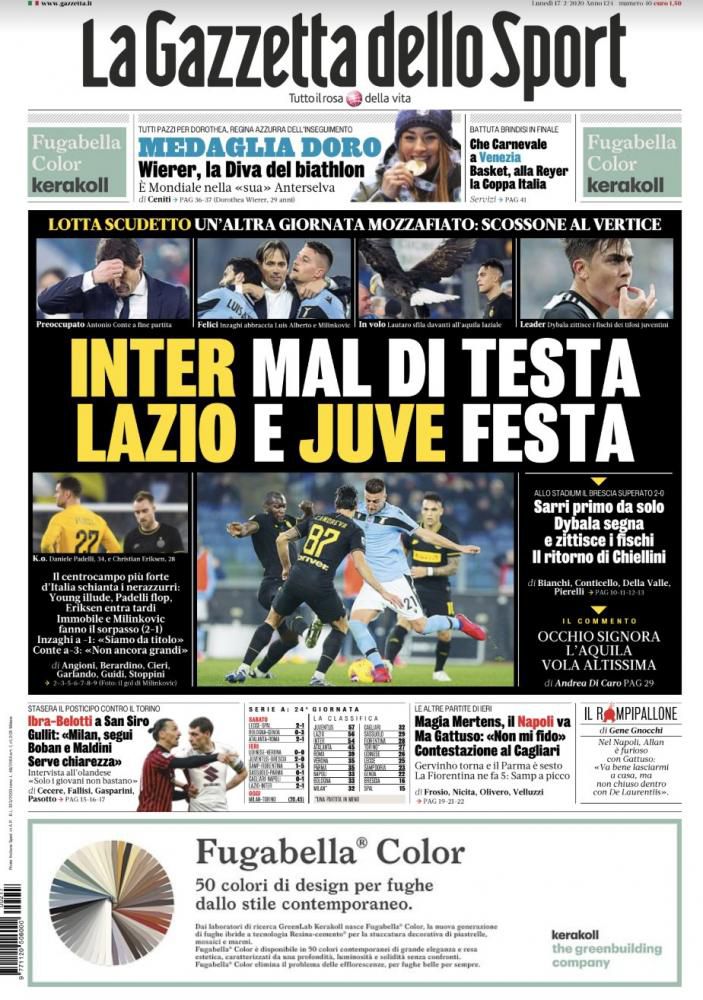 RASSEGNA STAMPA, Le prime pagine dei quotidiani sportivi Redazione 17 Febbraio 2020 Ecco le prime pagine dei maggiori quotidiani sportivi italiani, oggi in edicola: