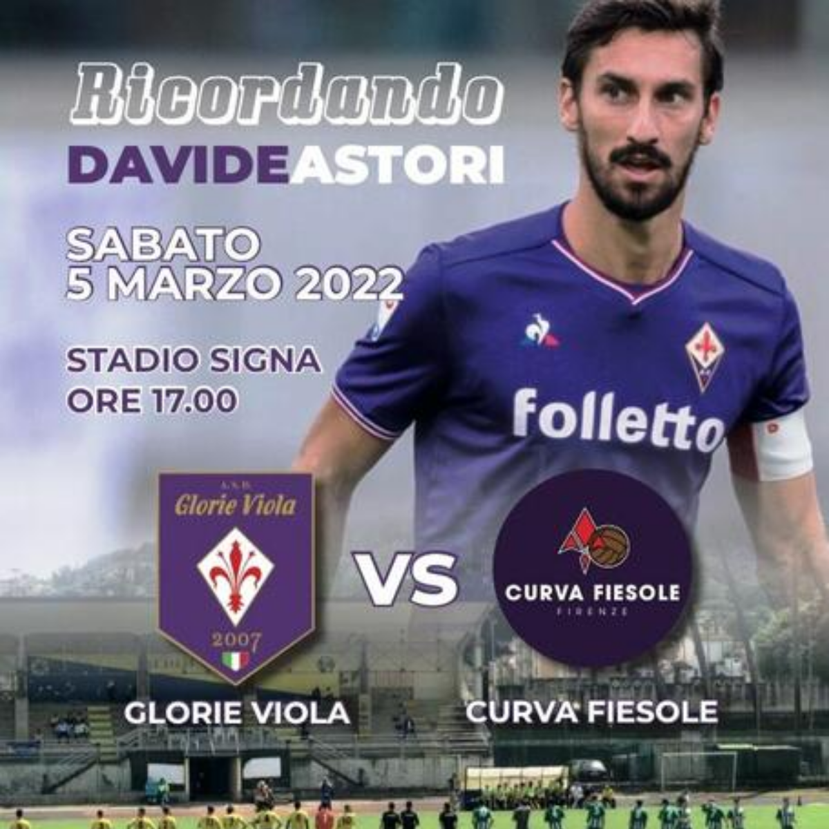 In ricordo della memoria del capitano viola Davide Astori, sarà organizzato un match di beneficienza tra Glorie Viola e Curva Fiesole.