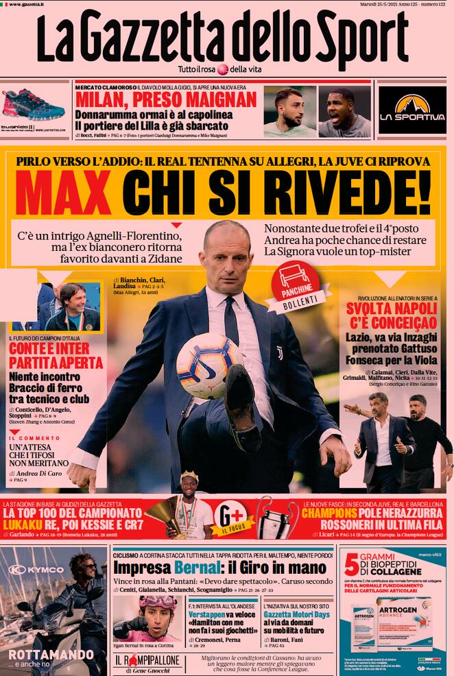 RASSEGNA STAMPA, Le prime pagine dei quotidiani sportivi Redazione 25 Maggio 2021 Ecco le prime pagine dei quotidiani sportivi in edicola quest’oggi: