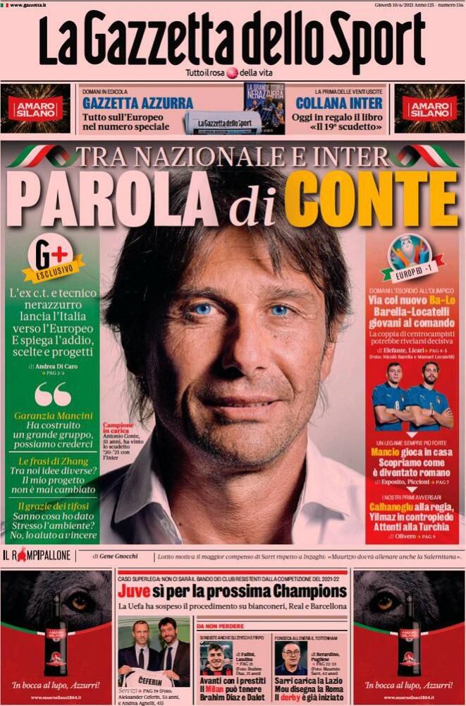 RASSEGNA STAMPA, Le prime pagine dei quotidiani sportivi Redazione 10 Giugno 2021 Le prime pagine dei quotidiani sportivi oggi in edicola