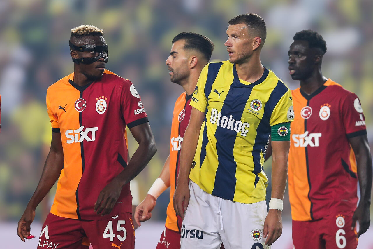 Edin Dzeko e Victor Osimhen durante una partita di Turkish Super big match tra Fenerbahce and Galatasaray all' Ulker Stadium