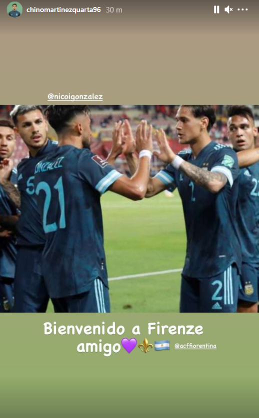 NICO GONZALEZ, Martinez Quarta lo accoglie a Firenze sui social Redazione 23 Giugno 2021 Con una storia Instagram il difensore viola Lucas Martinez Quarta dà il proprio benvenuto a Nico Gonzalez nella Fiorentina. Ecco qui di seguito il post riportato: