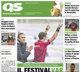 Oggi il Quotidiano Sportivo titola così: “Il festiVar degli errori”. I viola di Prandelli hanno raccolto ieri il terzo pareggio casalingo contro il Verona nell’anticipo delle 15. Gli scaligeri sono passati in vantaggio all’ottavo minuto con un rigore trasformato da Veloso ma i padroni di casa al 19′ hanno pareggiato i conti, sempre dagli undici metri, con Vlahovic. Il serbo si dimostra freddo dal dischetto siglando il suo secondo rigore consecutivo in due partite.