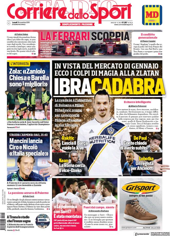 RASSEGNA STAMPA, Le prime pagine dei quotidiani Redazione 18 Novembre 2019 Queste le prime pagine dei quotidiani oggi in edicola: