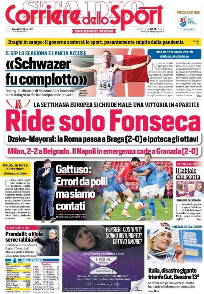 RASSEGNA STAMPA, Le prime pagine dei quotidiani sportivi Redazione 19 Febbraio 2021 Le prime pagine dei quotidiani sportivi oggi in edicola
