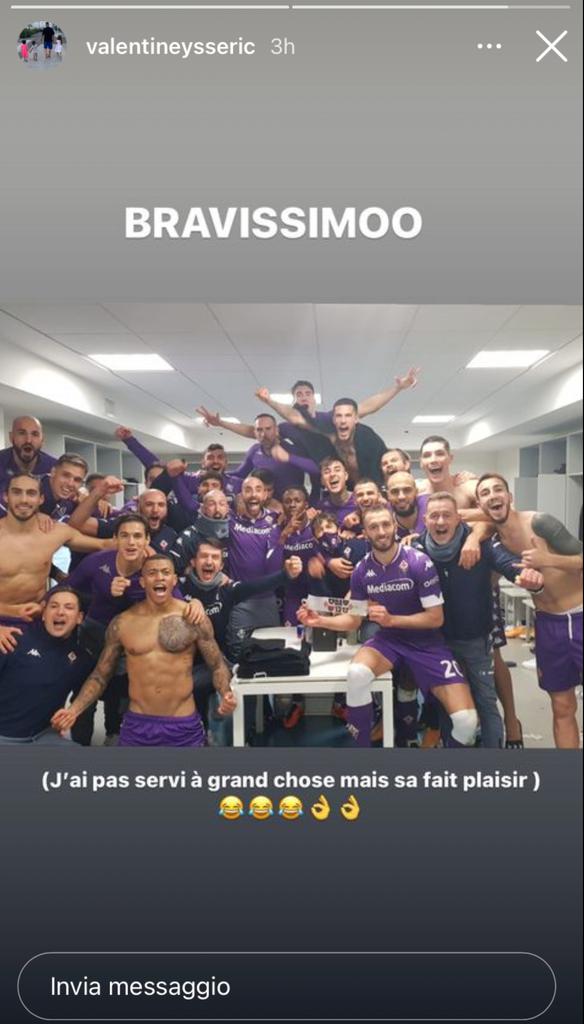 Valentin Eysseric, centrocampista della Fiorentina, attraverso una storia Instagram ha voluto congratularsi, in modo anche simpatico, con i propri compagni di squadra per la vittoria di ieri sera contro la Juventus. Ecco il suo commento: “Non sono stato usato molto, ma è carino. Bravissimi!”