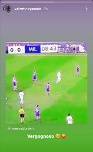 Il trequartista viola Valentin Eysseric ha espresso tramite Instagram il proprio disappunto verso l’arbitraggio di ieri sera. Il francese si è espresso come Theo Hernandez: dopo la scorsa giornata, il giocatore del Milan ebbe modo di criticare la prestazione dell’arbitro Pasqua subito dopo la sconfitta contro il Napoli. Adesso tocca al giocatore francese, che ha pubblicato una stories dove si vede l’azione del primo gol rossonero e la scritta: “Vergognoso”. Questa l’immagine:
