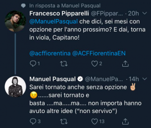 L’ex capitano della Fiorentina, Manuel Pasqual, ha risposto così ad un utente sui social che gli chiedeva di ritornare in viola: