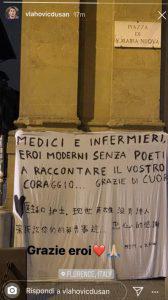 Vlahovic ringrazia sui social i medici che stanno lavorando continuamente. Il giovane ha postato uno striscione esposto in piazza Santa Maria Nuova: “Medici e infermieri, eroi moderni senza poeti a raccontare il vostro coraggio… Grazie di cuore”, col giocatore che ha aggiunto: “Grazie eroi”.