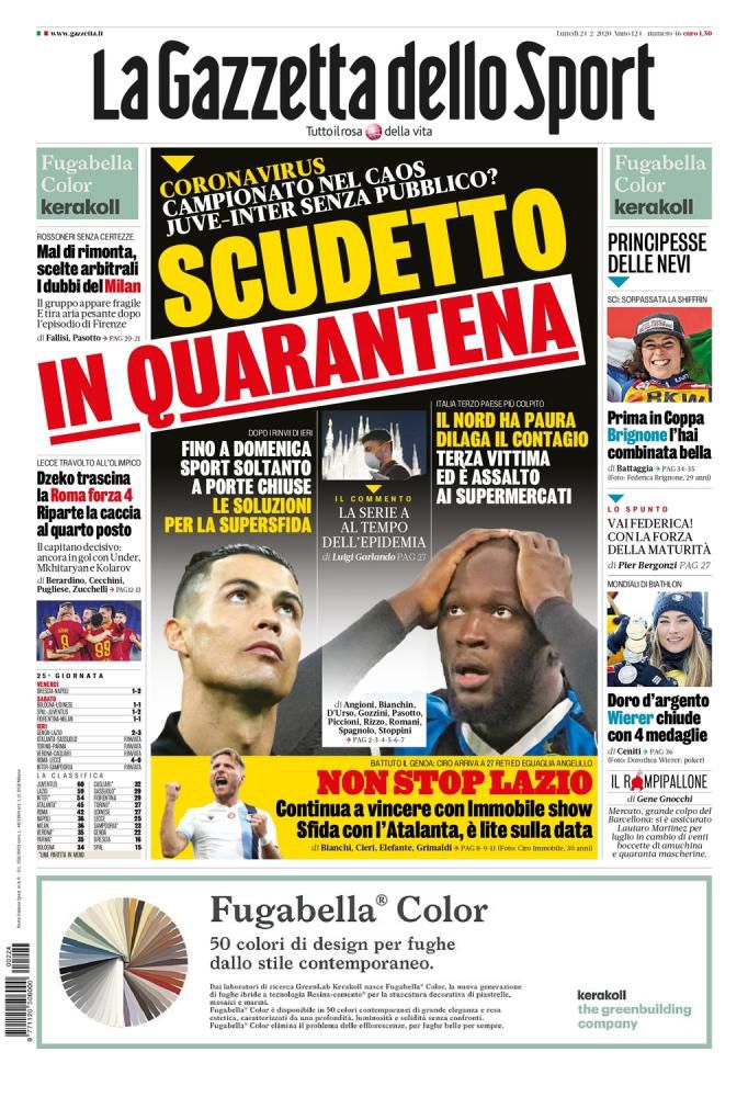 RASSEGNA STAMPA, Le prime pagine dei quotidiani sportivi Redazione 24 Febbraio 2020 Ecco le prime pagine dei maggiori quotidiani sportivi italiani, oggi in edicola: