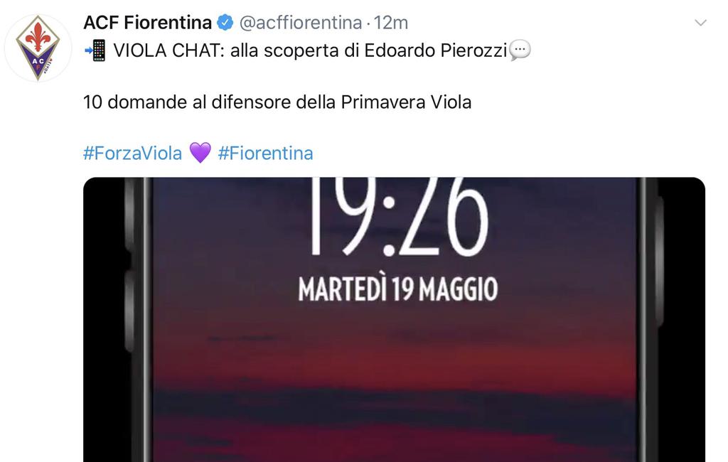 Prosegue l’iniziativa social della Fiorentina che simulando uno scambio di messaggi social con i rispettivi giocatori riporta interviste ai giovani talenti emergenti della primavera. Stavolta è il turno di Edoardo Pierozzi, questo il post ufficiale con le sue parole: