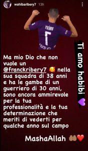 RIBERY, La moglie Wahiba: “Chi non vorrebbe in squadra un giocatore così?” Redazione 9 Maggio 2021 Ecco il contenuto di una Story della moglie di Ribery, Wahiba, sul suo profilo Instagram: