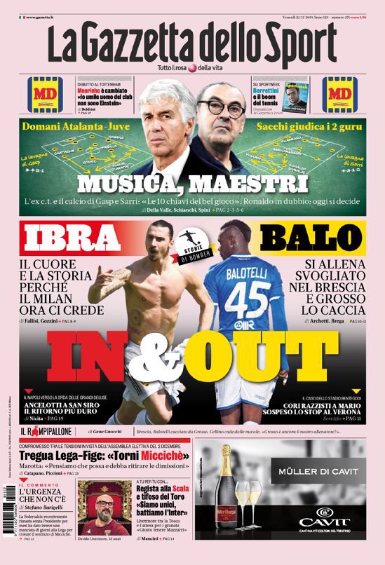 RASSEGNA STAMPA, Le prime pagine dei quotidiani Redazione 22 Novembre 2019 Ecco di seguito le prime pagine dei principali quotidiani sportivi oggi in edicola: