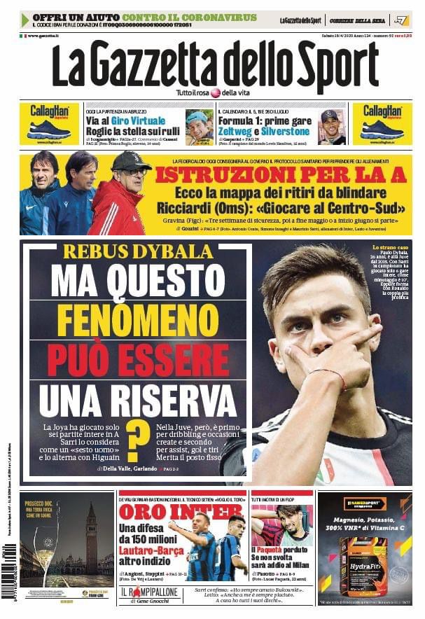 RASSEGNA STAMPA, Le prime pagine dei quotidiani sportivi Redazione 18 Aprile 2020 Ecco le prime pagine di questa mattina: