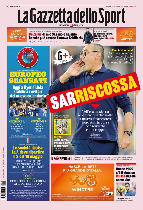 RASSEGNA STAMPA, Le prime pagine dei quotidiani sportivi di oggi Redazione 17 Marzo 2020 Queste le aperture dei quotidiani sportivi di oggi martedì 17 marzo.