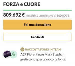 Continua il successo della raccolta fondi “Forza e Cuore” lanciata dalla Fiorentina da ormai 3 settimane. È da poco stata largamente superata la quota 800.000€: