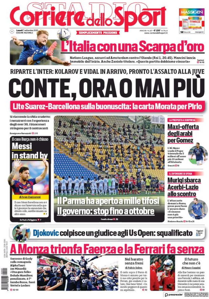 RASSEGNA STAMPA, Le prime pagine dei quotidiani sportivi di oggi Redazione 7 Settembre 2020 Ecco le prime pagine dei quotidiani sportivi di oggi: