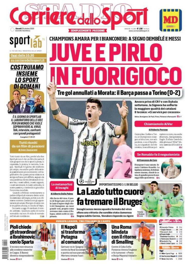 RASSEGNA STAMPA, Le prime pagine dei quotidiani sportivi di oggi Redazione 29 Ottobre 2020 Ecco le prime pagine dei quotidiani sportivi di oggi:
