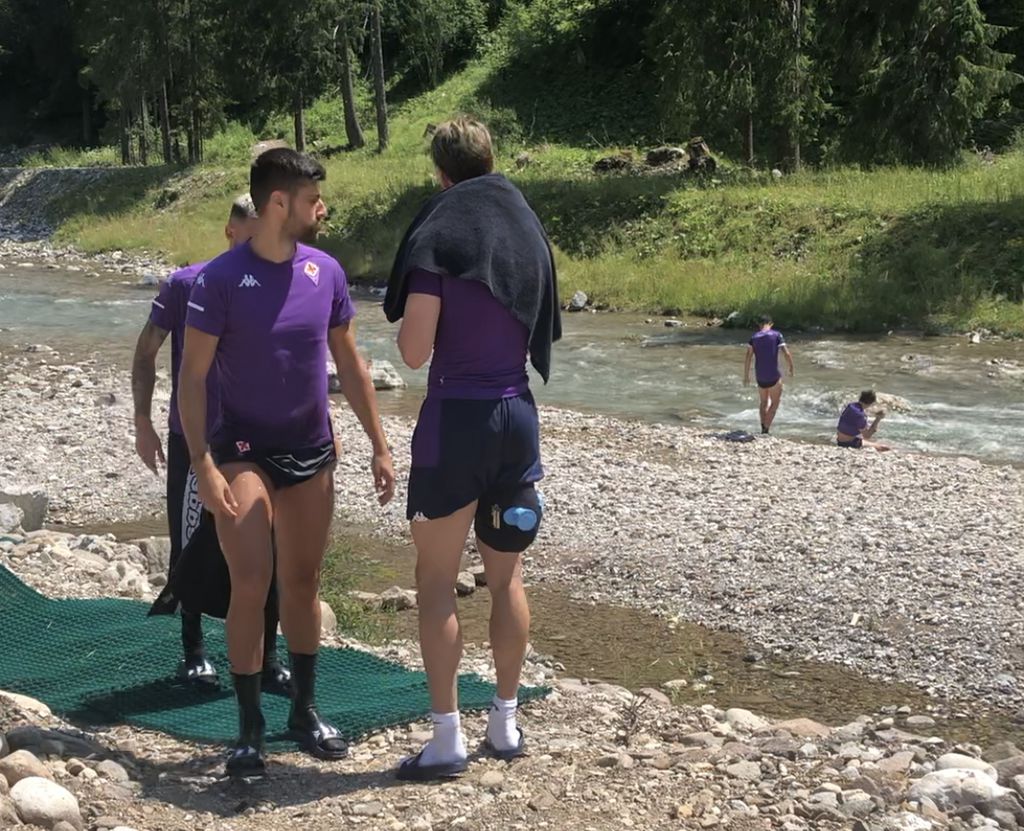 Dopo la consueta seduta di allenamento mattutino diversi giocatori della Fiorentina di Italiano si sono spostati verso il fiume adiacente al campo per effettuare la cosiddetta crioterapia utile per il recupero muscolare dopo una seduta di lavoro aerobico molto intensa come quella effettuata oggi. Tra i giocatori più acclamati il solito Dusan Vlahovic. Ecco la foto e il link del video realizzato dalla nostra redazione: IMG_3230
