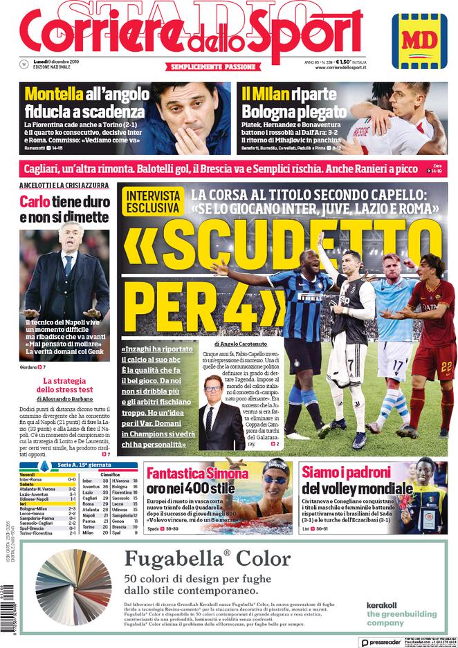 Sulla Gazzetta dello Sport si parla della sfida tra Fiorentina e Torino, vinta dai granata per due reti ad uno. “Il Toro coglie l’occasione di piegare una Fiorentina in crisi e dopo il blitz di Marassi piazza il secondo successo di fila. “si legge. “Per Montella il momento è assai critico: quarta sconfitta di seguito con la prospettiva, di sicuro non tranquillizzante, di dover fare punti contro Inter e Roma. Chiaro, l’allenatore viola che qui a Torino ha recuperato Chiesa (scatenatosi nel finale) si augura di poter riavere almeno qualcuno dei big assenti (a cominciare da Pezzella), ma quel primo tempo di diffuse «assenze» e blocchi mentali, preoccupa tutto l’ambiente, a cominciare da Rocco Commisso. L’allenatore alla fine è stato di nuovo tranquillizzato, forse perché il secondo tempo ha visto la squadra perlomeno viva e combattiva. Però se davvero Montella ha avuto altre due partite per evitare l’esonero, non può di sicuro tirare il classico sospiro di sollievo: affrontare adesso Inter e Roma è come per gli antichi romani entrare nelle Forche Caudine: uscirne vivi era un miracolo.”