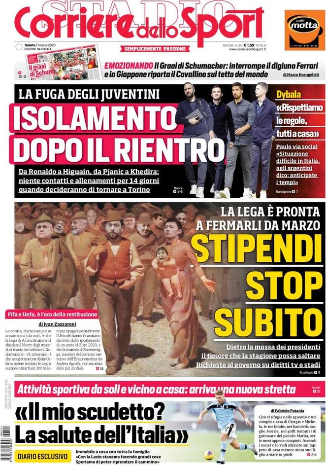 RASSEGNA STAMPA, Le prime pagine dei quotidiani sportivi Redazione 21 Marzo 2020 Queste le prime pagine dei quotidiani sportivi oggi in edicola