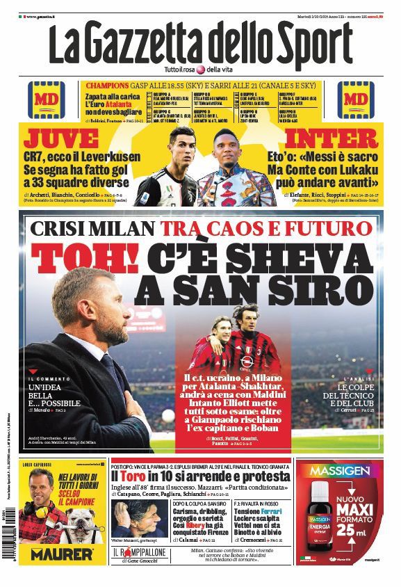RASSEGNA STAMPA, Le prime pagine dei quotidiani Redazione 1 Ottobre 2019 Di seguito le prime pagine dei quotidiani di stamattina: