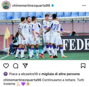 Martinez Quarta è sicuramente una delle note più liete della stagione della Fiorentina. Il difensore argentino, arrivato in estate dal River Plate, ha pubblicato sui propri profili social una foto di squadra con un commento che recita: “Continuiamo a lottare. Tutti insieme”. Segnale di come anche all’interno dello spogliatoio si senta la necessità di restare uniti per arrivare al traguardo della salvezza. Ecco il post: