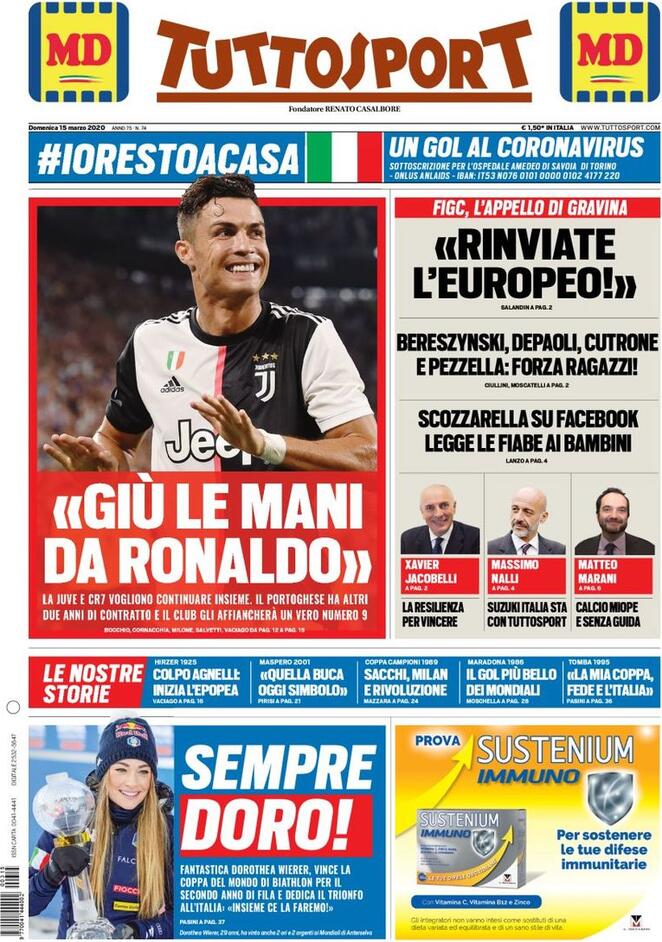 Un augurio di pronta guarigione ai giocatori positivi al Coronavirus arriva da Tuttosport che nel taglio laterale titola: “Bereszynski, Depaoli, Cutrone e Pezzella: forza ragazzi!”