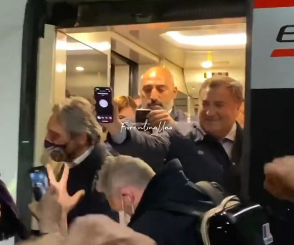 Infatti, anche il presidente gigliato Rocco Commisso, in collegamento telefonico, ha partecipato ai canti ed ai cori dei tifosi viola presenti alla stazione ferroviaria Firenze – Campo di Marte.