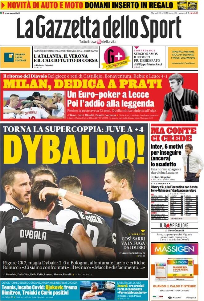 RASSEGNA STAMPA, Le prime pagine dei quotidiani sportivi Redazione 23 Giugno 2020 Queste le prime pagine dei quotidiani sportivi oggi in edicola